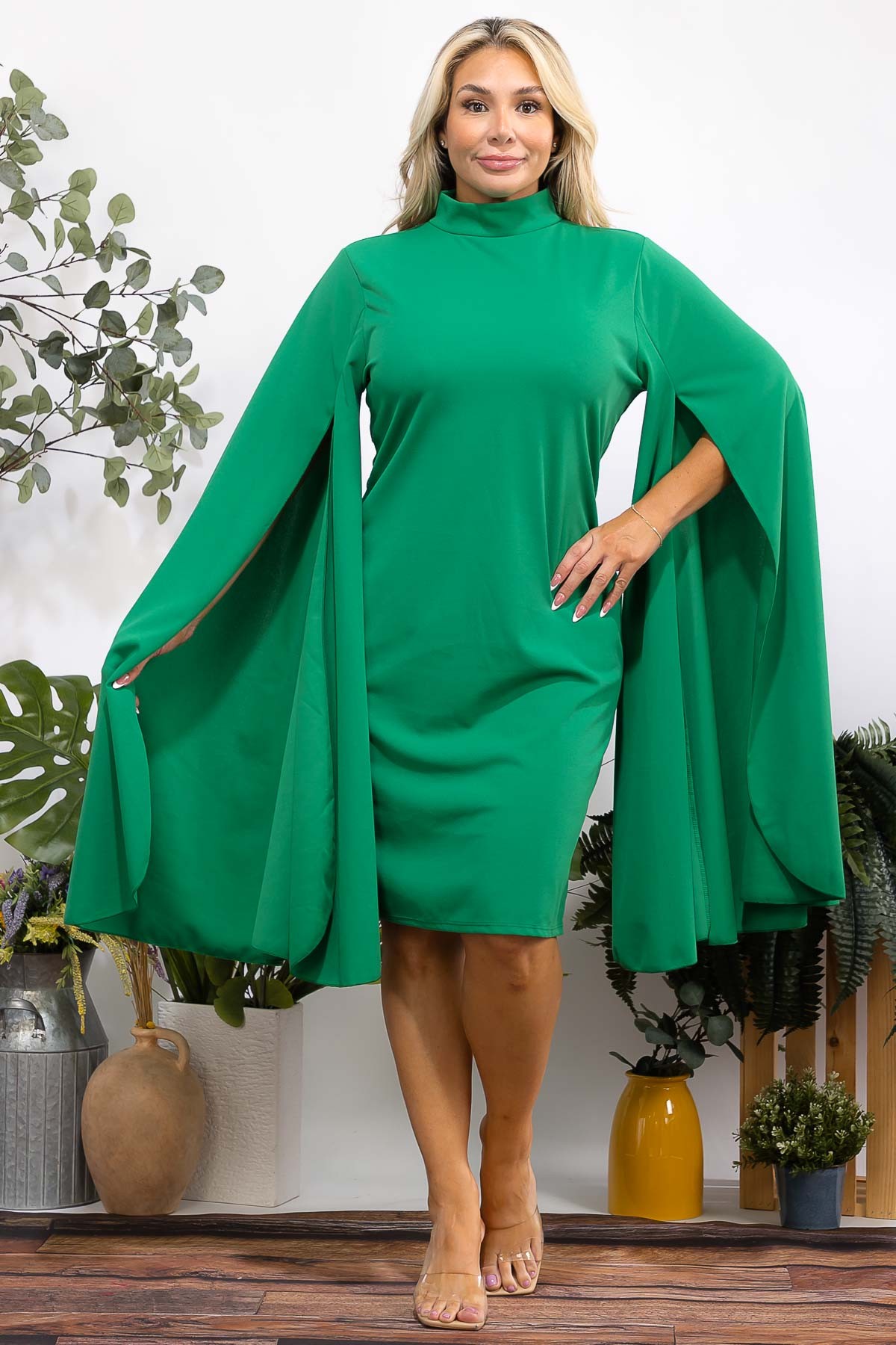 Midi dress. Designed to show off your silhouette, this dress has a bodycon fit, Hi neckline is balanced with a below the knee hemline, while the cape sleeves deliver a high impact yet sophisticated look.