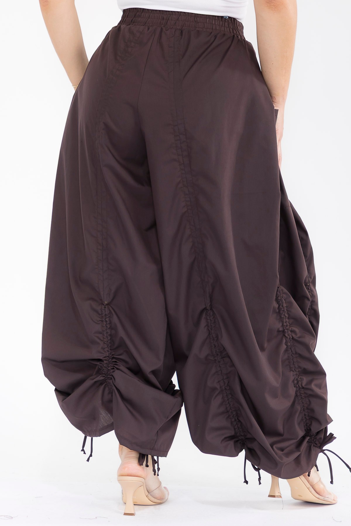 Relaxed, oversized silhouette pants, elastic waist, Lightweight fabric for breathable comfort and Adjustable drawstring cuffs for a custom fit.